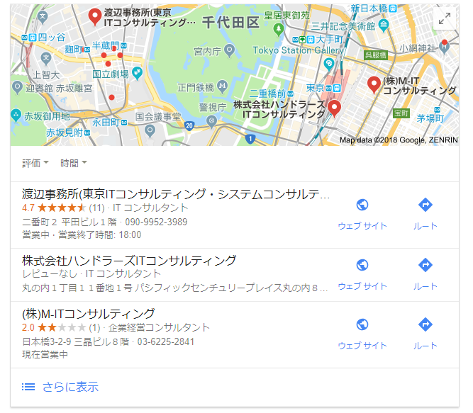 もちろん、渡辺事務所もMEO対策をしています。ビッグキーワードでも検索の1ページ目に表示させることが可能です。